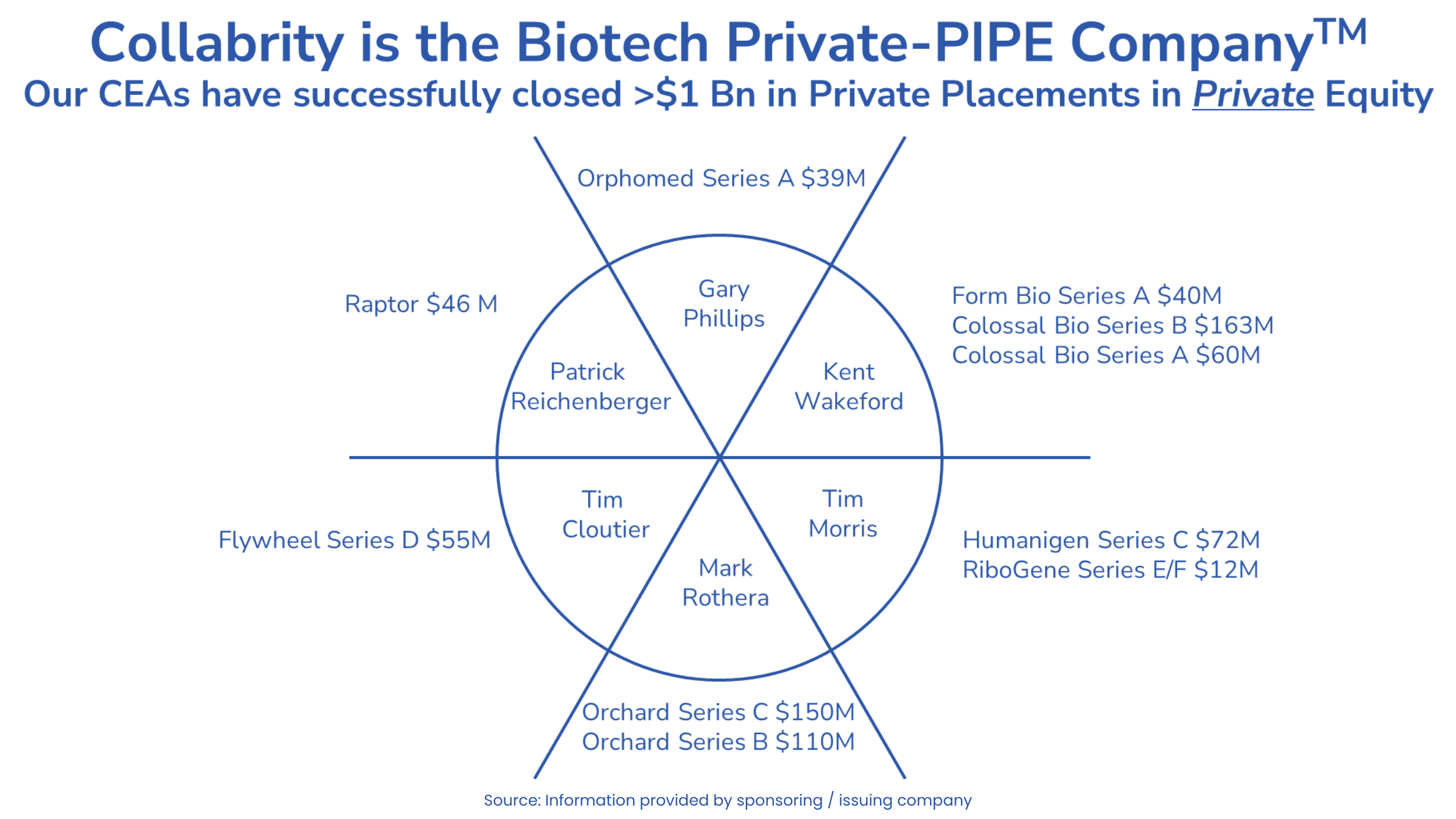 Collabrity Executive Advisors (CEAs) have Proven Biotech Private-PIPE Fundraising Track Records